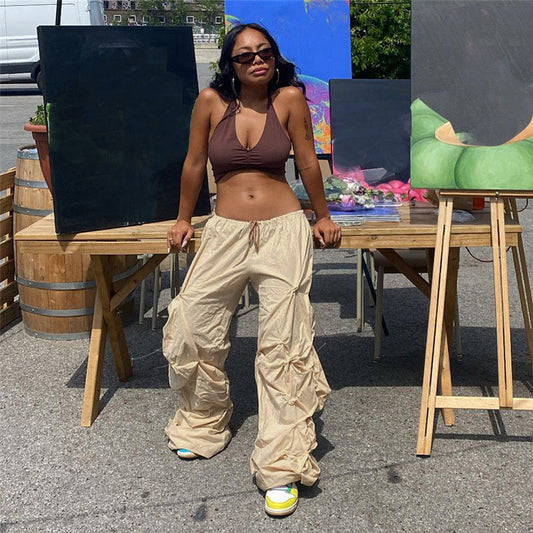 Loose Fit Wide Leg PU Leather Pants with Pockets