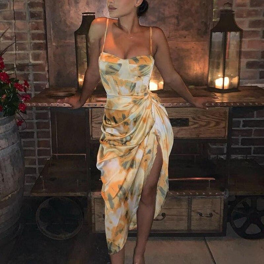 Matte PU Strap Midi Dress with Open Back for Club & Party SAGE